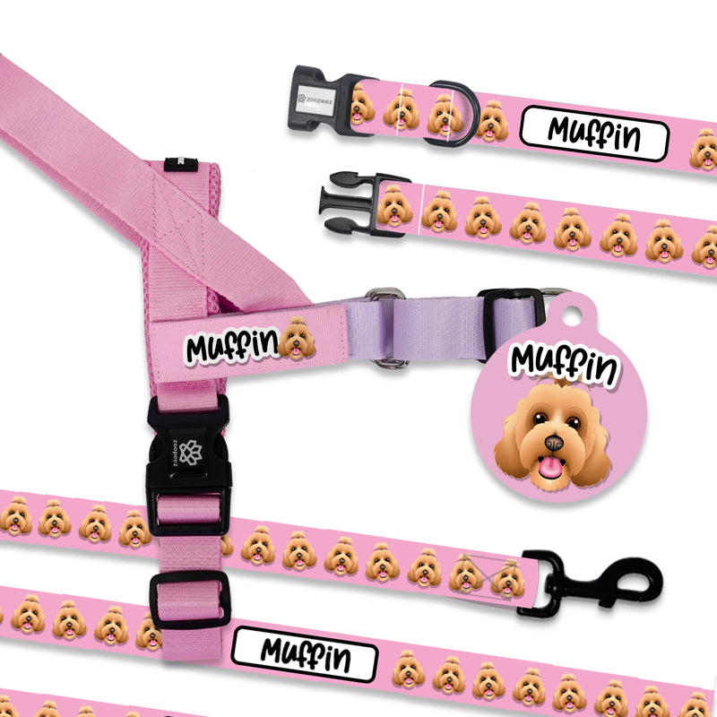 Elevate your pup's style with the Zoopeez Dog Portrait Bundle! This stylish collection includes a collar, lead, and harness, all designed to showcase your dog's unique personality.